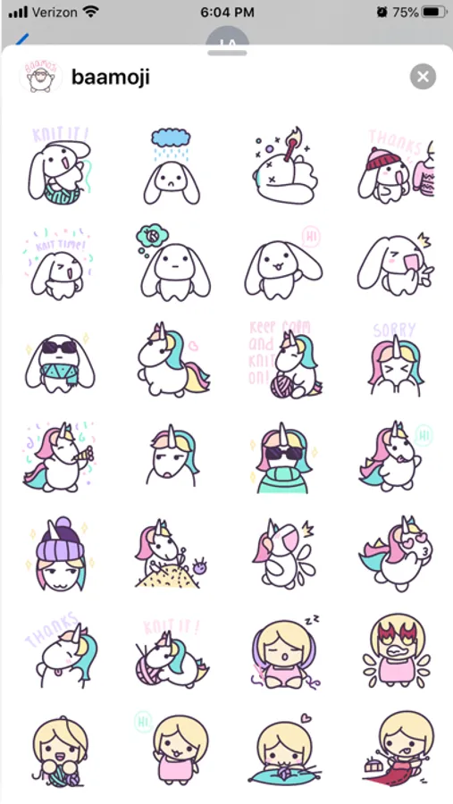Share your current emotion in iMessage with your friends through your favorite knitting characters! You can send a happy lamb or a loving alpaca, or maybe you're having a knit-mare!