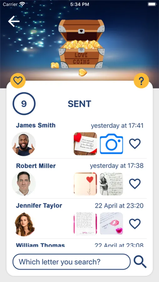 With the purpose of "not let to tomorrow what you wish to say today to someone", this App allows you to instantaneously and easily send your Love Coin to anyone everywhere in the world, expressing your pure feelings, linking the heart feelings to the brain to your hands, your Love Coins is the pure and congruent manifest of your purest feelings to the one which will enrich his/her treasure chest of Love.