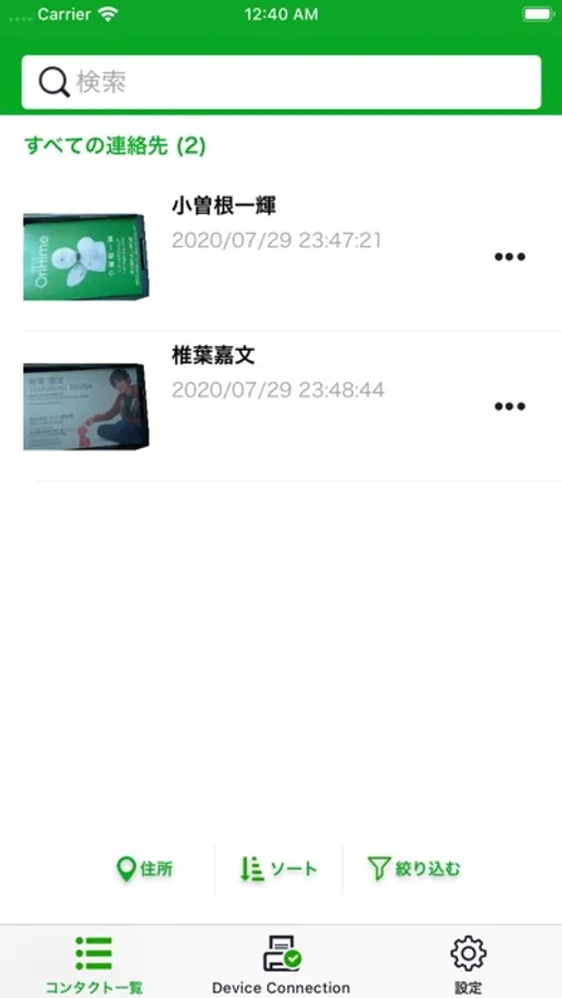 このアプリは、スマート名刺ケース(デバイス)でスキャンした名刺の情報を保存します。