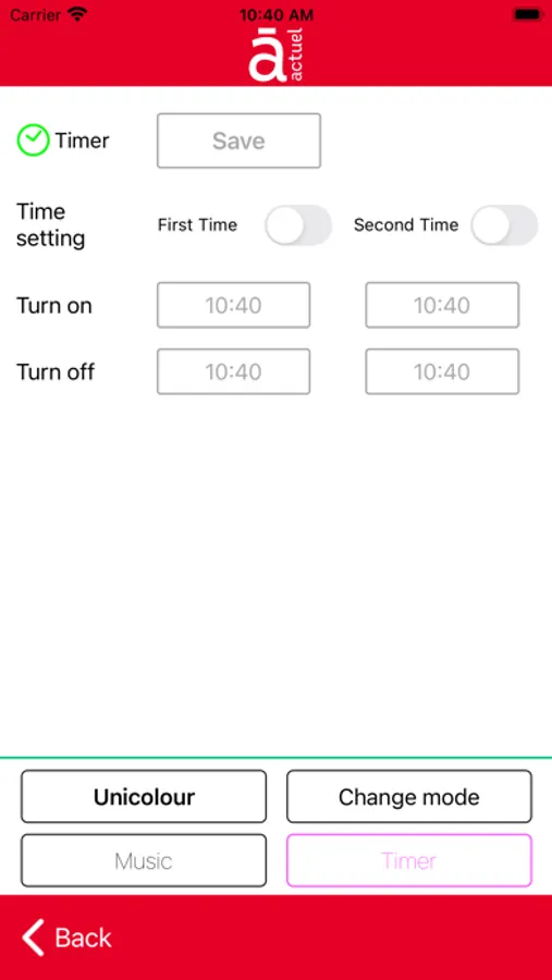 Connect your smart device with this RGB LED light by bluetooth, you may assign renamed this light, this App has "the uncilor steady ", "color choose wheel", "change mode" can show from the unicolor choose with per color and offer 6 functions and multicolor with 7 functions. "Speed "slide is applicable if you choose multicolor , "Music" can add from iOS device by iTunes. "Timer" are two timers available, set the light ON and OFF automaticaly at the prefernce time.