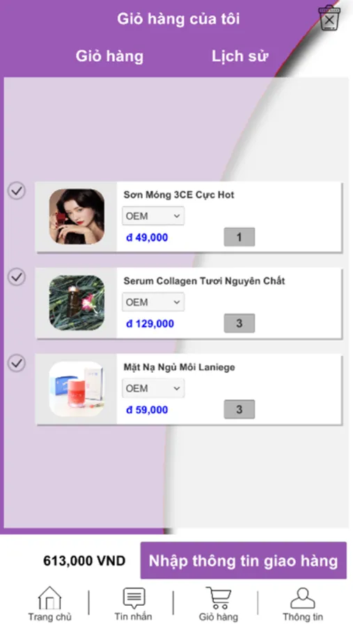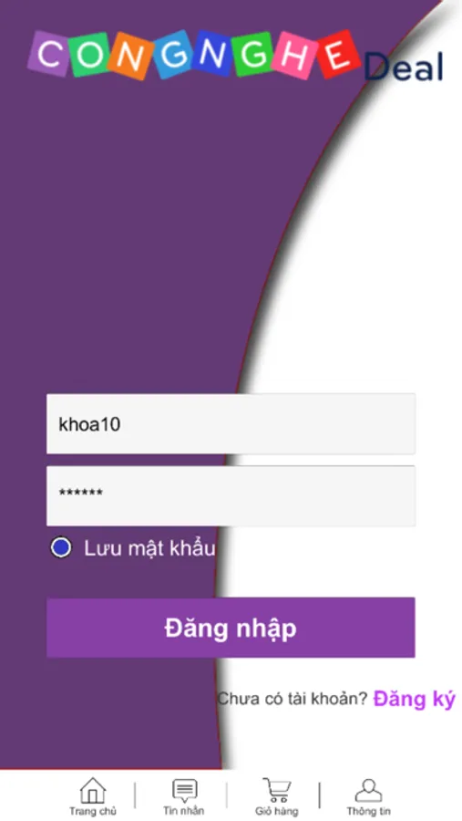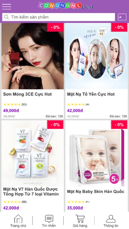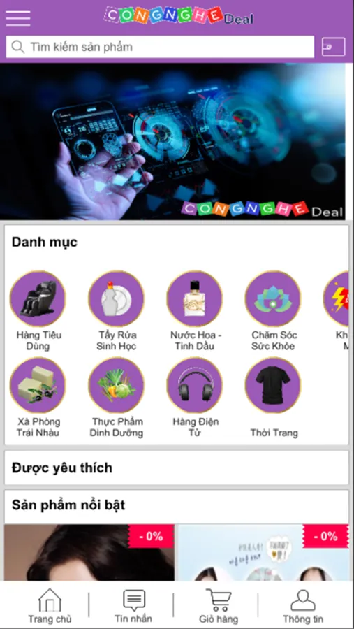 App thương mại điện tử - Công Nghệ Deal - Chuyên bán các mặt hàng đa dạng (mỹ phẩm, sức khỏe, nước hoa, thời trang, hàng điện tử...) - chọn sản phẩm, thêm vào giỏ hàng, nhập thông tin thanh toán và địa điểm giao nhận - thao tác đơn giản, giao hàng nhanh chóng, tư vấn nhiệt tình
