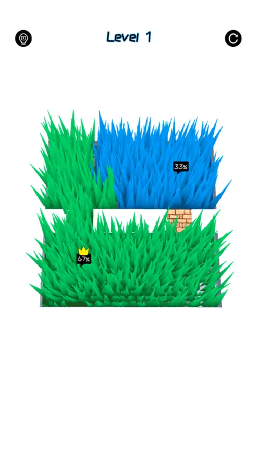 Break block, create best path to fill more green grass.