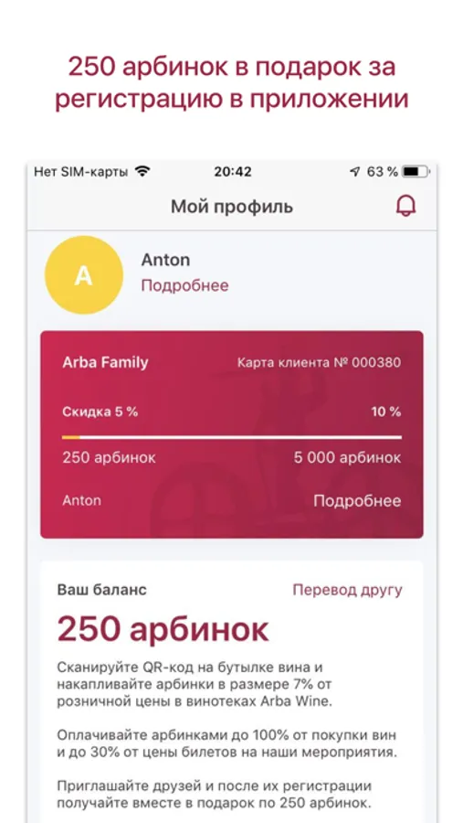 Возможности программы лояльности и мобильного приложения «Arba Wine Club»