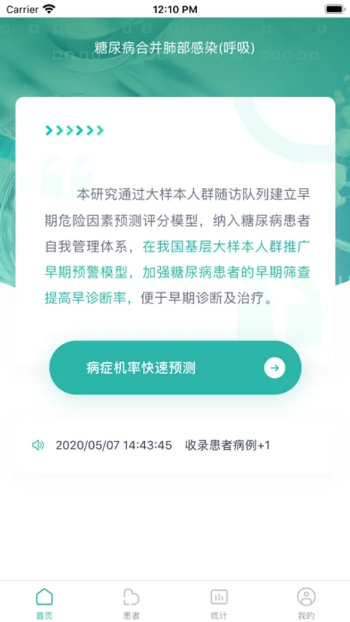 通过简单预测小工具,帮助实现快速病症机率检查。上海复旦大学附属瑞金医院呼吸与重症医学科专注于为广大医疗人员提供一站式的知识和工具服务,为医疗人员提供权威的逻辑缜密预测诊断模型,实用的病症机率快速预测小工具,收录档案方便进行患者管理和随访!