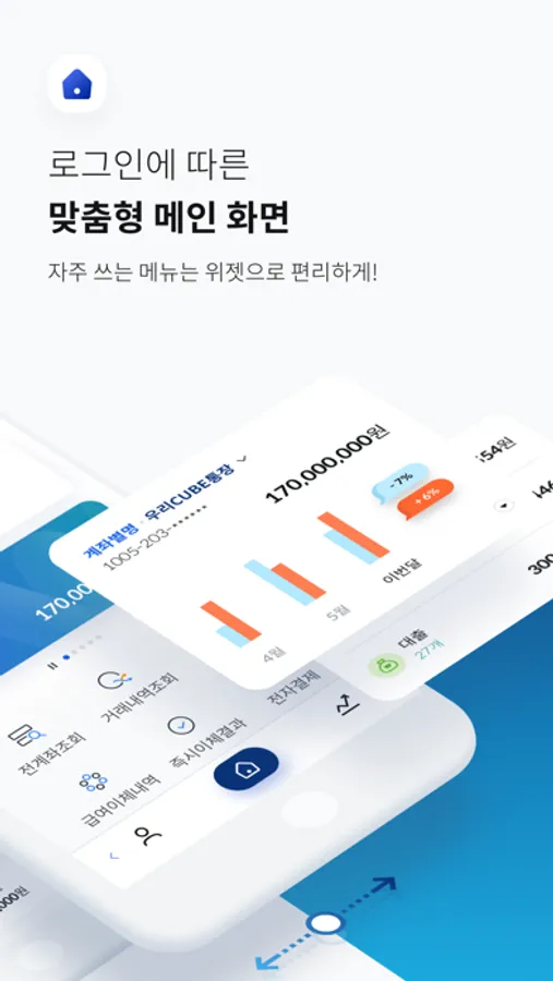 개인사업자 및 법인사업자 등 로그인 고객 유형에 따라 맞춤형 메인 화면을 제공하고 이용자 권한에 따른 메뉴 구성으로 업무를 쉽게 확인할 수 있습니다.