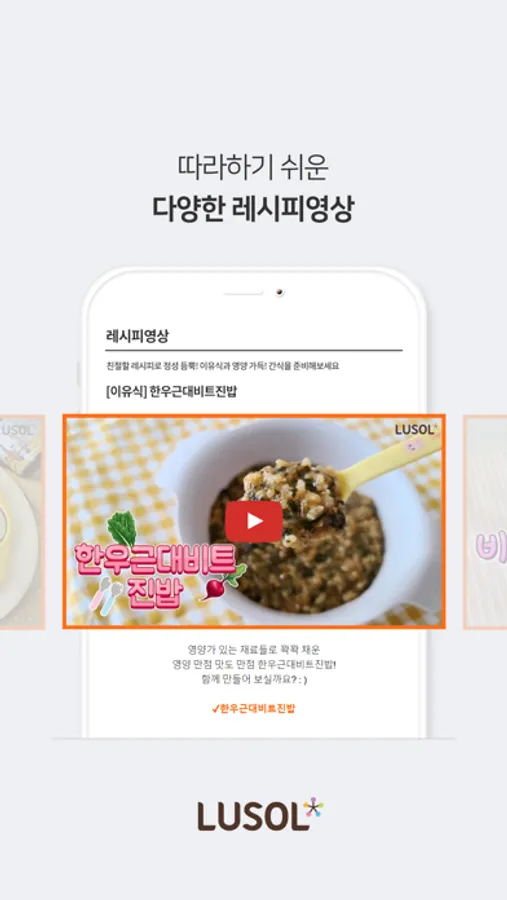 루솔은 아기에게 건강을 엄마에게 작은 여유를 선물하기 위해 건강한 밥상을 선물합니다.