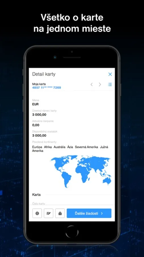 Card details shows all of the important details about the selected card in one place. Card details are available for both credit and debit cards. There is also an option to create a request related to the card whose details are currently displayed.