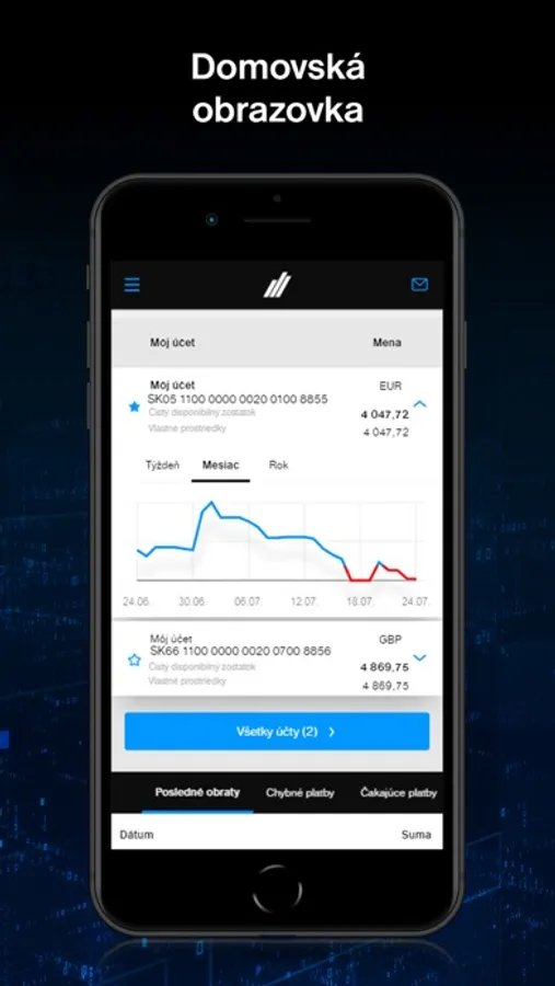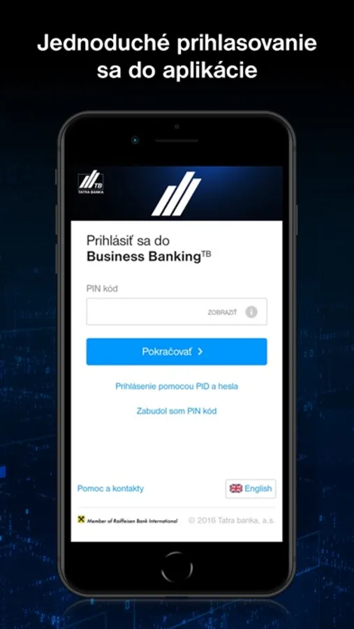 The Business BankingTB mobile application is available in two language versions: Slovak and English.
