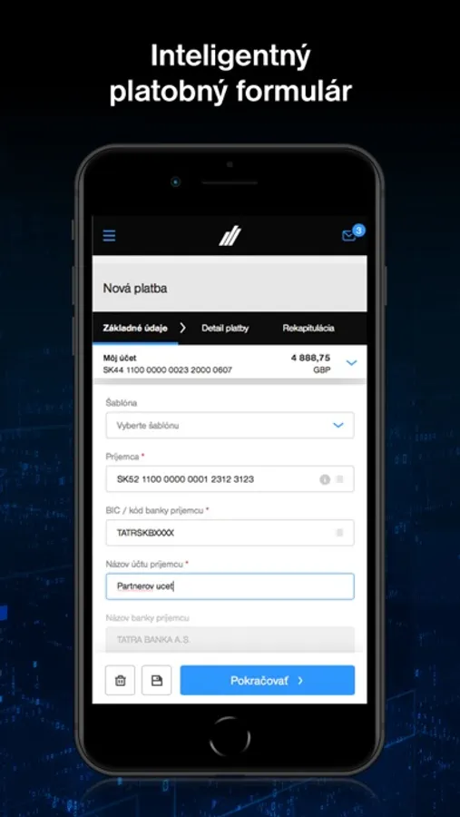 The mobile application is intended especially for clients with activated Business BankingTB services. The application provides the same functionality as the desktop version of Business BankingTB.