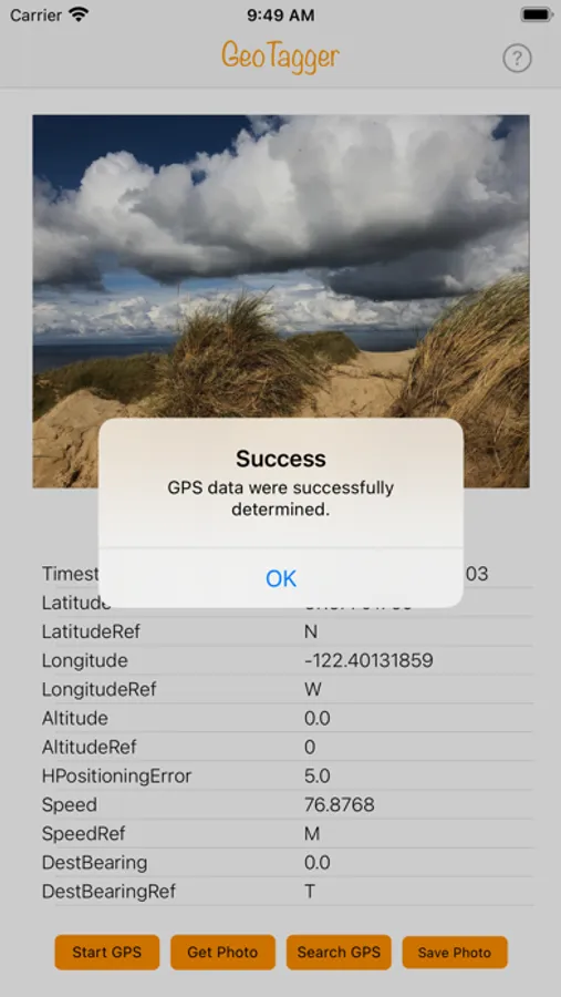 In addition, the metadata of the loaded photo can be displayed via GeoTagger.