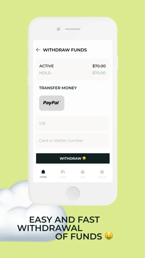Withdraw money on Visa, Mastercard and e-wallets instantly on request.
