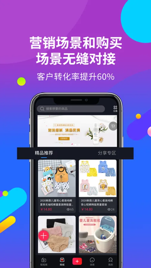 ●各版块之间层次分明,小视频分享美好生活,直播表演推荐商品,精选购物商城,多个版块等你来玩