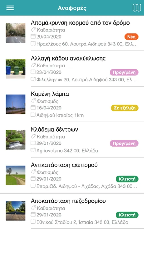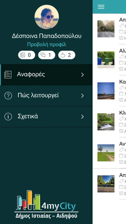 Δημιουργήστε τη δική σας αναφορά, περιγράφοντάς την αναλυτικά, προσδιορίζοντάς την στον χάρτη και ανεβάζοντας φωτογραφίες.