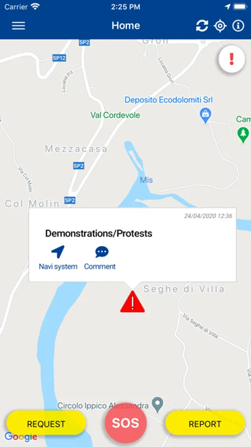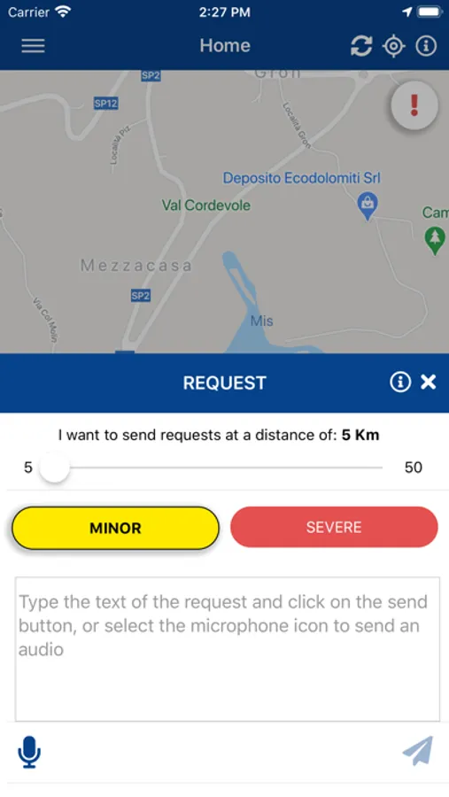 AnyHelp has been developed to give anyone the possibility to ask for help for any kind of daily problem by sending a request online. Send your request, set the color to yellow or red according to the urgency or gravity, set the distance at which you want the request to be sent and describe the problem. You ran out of gas, you have a broken down car in the sun and your children need water, you need a tool to solve a problem or you just need a piece of rope to tie your luggage and leave, see an animal in distress or have you lost yours? For any problem for which someone's intervention can help, send a request that could save you time and money, and avoid that some trivial problems can become more serious problems. Receive in turn requests to respond in case you are available and able to bring your help. Use the sos button to get in touch with the public emergency service of your country or to the police, while the App will automatically send a request for help (medical or physical safety) in a predetermined radius around you that other people can intervene in support in the shortest possible time. Send geo-localized reports on the map to warn all users of a certain danger or inconvenience, so as to allow people to avoid it or to intervene if possible. Easily select the type of danger from the App (public order, natural events, and subcategories) and give others the possibility to add any developments to your report also by posting photos related to the event. Create groups of friends or acquaintances to have a group monitoring on the map and the possibility to exchange messages, audio, photos, within the group itself
