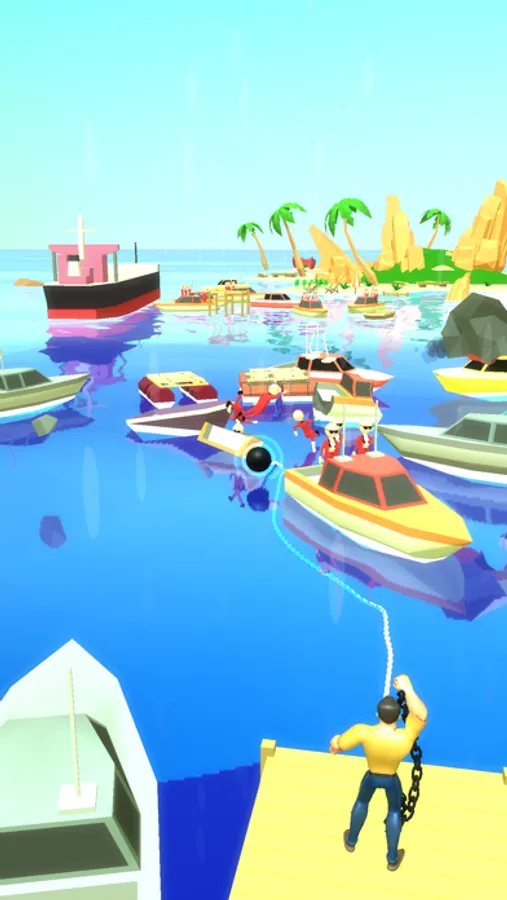 Fire your hook towards the mafia and destroy them. Make sure you don’t hit the people.