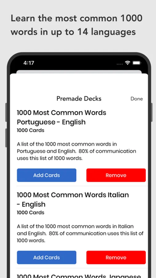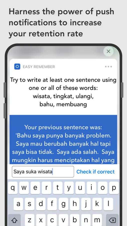 Every item that you add to Easy Remember, or that you download from a Pre-made deck is sent to you in pieces as Push Notifications. We all are used to receiving Push Notifications from other apps on our phone, and companies use them because Push Notifications grab your attention.