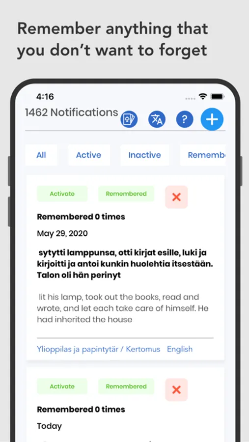Easy Remember helps you to remember anything that you want in a relaxed and straightforward way. Using Push Notifications, we help you to remember things quickly and with little effort.
