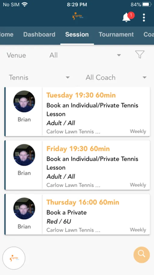 Our own branded app to facilitate booking on to our coaching programmes for 4 year olds to Adults of all levels - Schools, Club and Holiday programmes