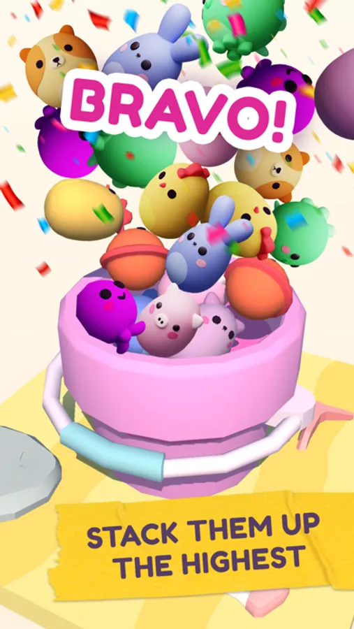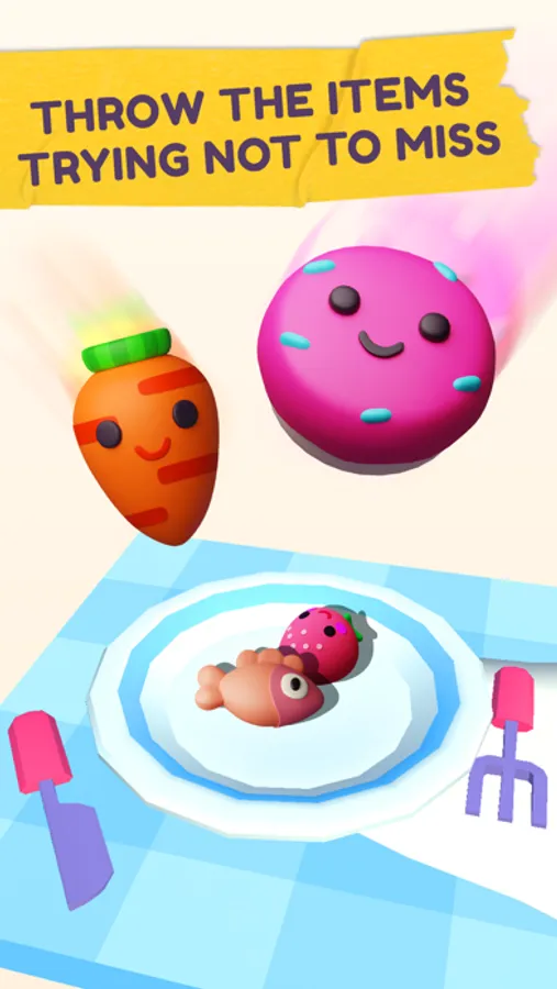 The aim of this funny and enjoyable game is to put the set number of objects into the bowl without losing more than three. It's not an easy task, as it seems that birds, bunnies, carrots, doughnuts, and other cute and colorful things are determined to roll away and fall over. You have to aim really well to keep things from falling off the bowl and your high stack from toppling down. Get ready to have lots of fun with Throw it! It's exciting and totally unputdownable!