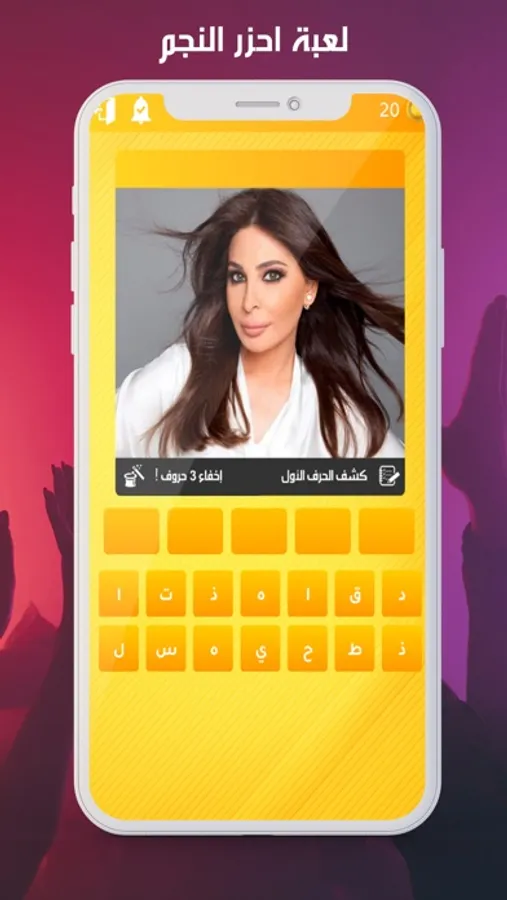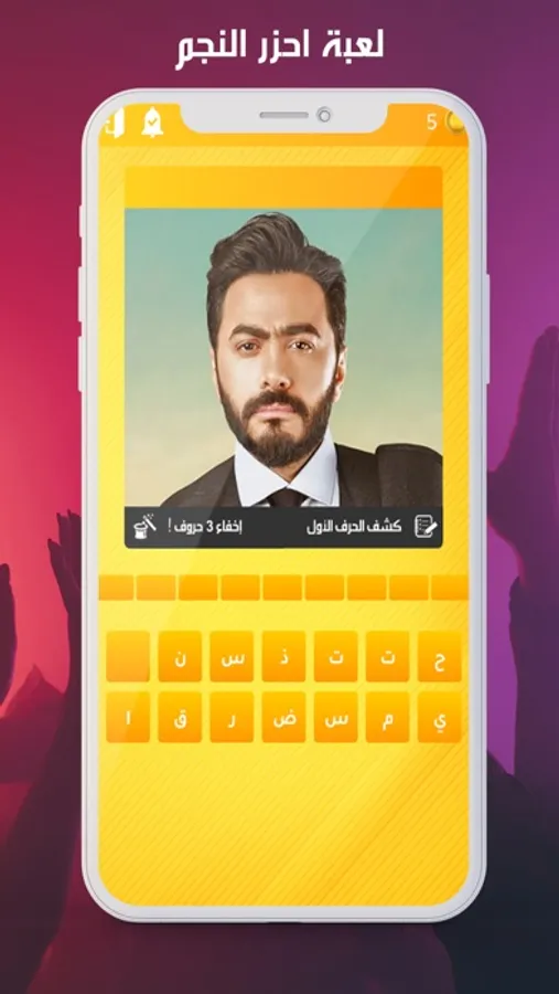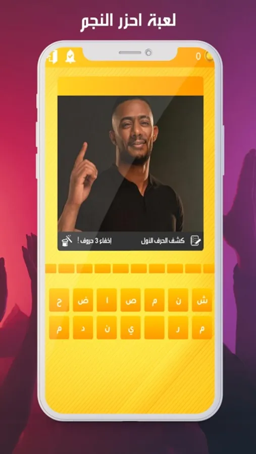 لعبة خفيفة تختبر ذكائك ومعرفتك بالنجوم العرب فمثلا ستظهر لك صورة نجم او ممثل عربي مثل محمد رمضان