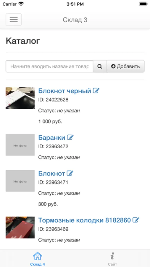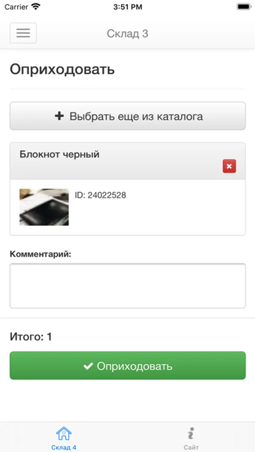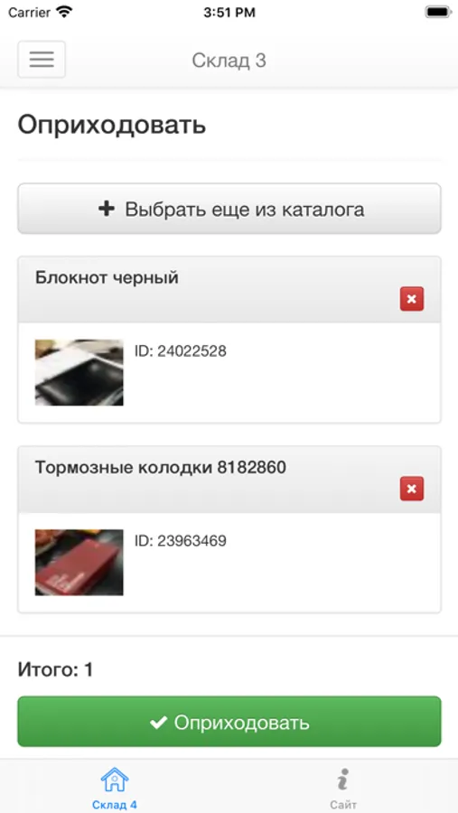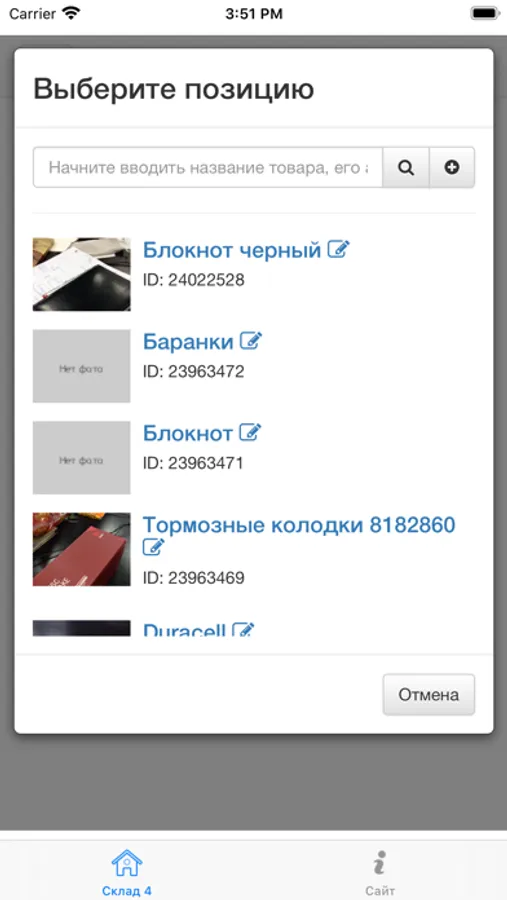Мобильное приложение для управления Склад 4 на платформе Outofbox