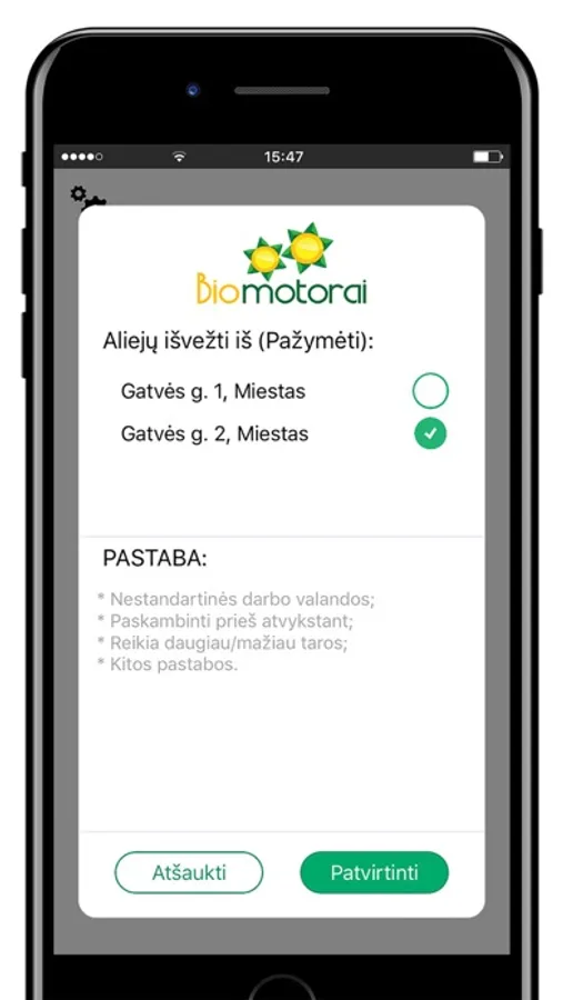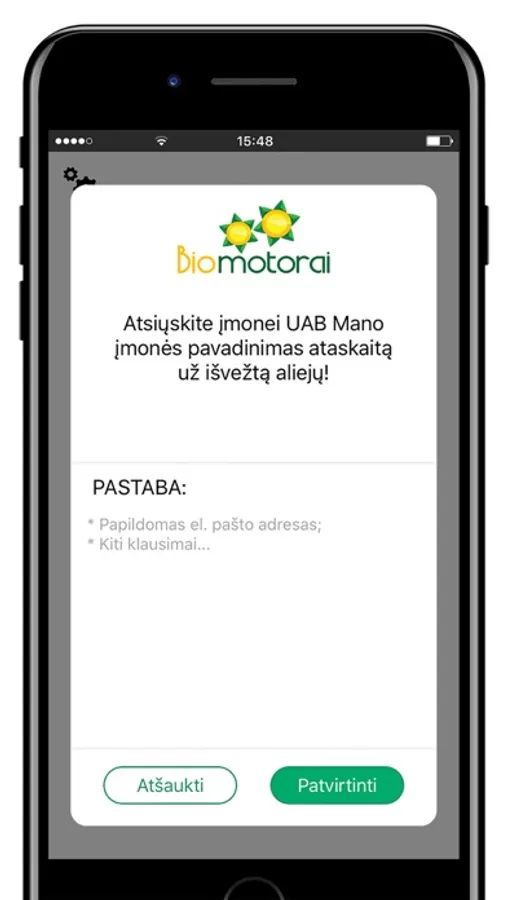 Login info of HoReCa and food production businesses in Biomotorai LV App is used for the purpose of concluding and performing the contract between the parties. More info what personal data and how is processed see: http://biomotorai.lv/slapuku-politika/.