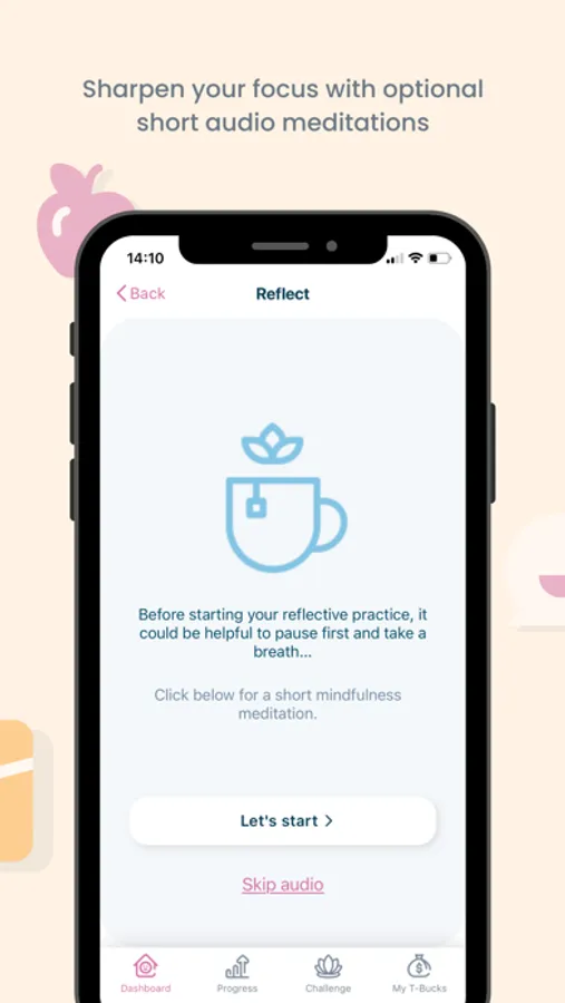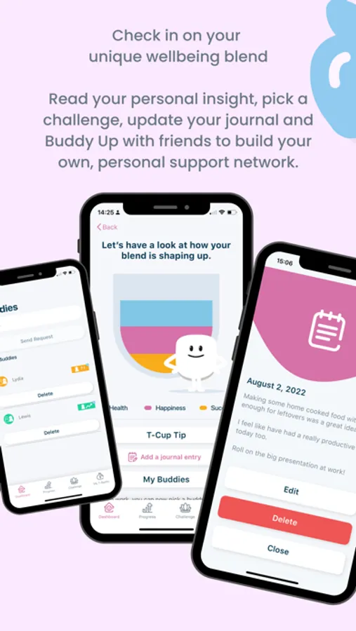 Easily build a self-reflective practice and work towards the best version of you. Designed by wellbeing experts, T-Cup helps you find your unique blend of health, happiness and success, to help you thrive in everyday life.