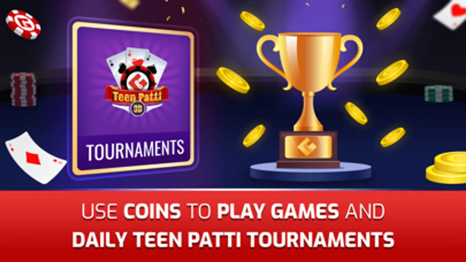 #Use Coins to play games and daily Coins Tournaments for Teen Patti.
