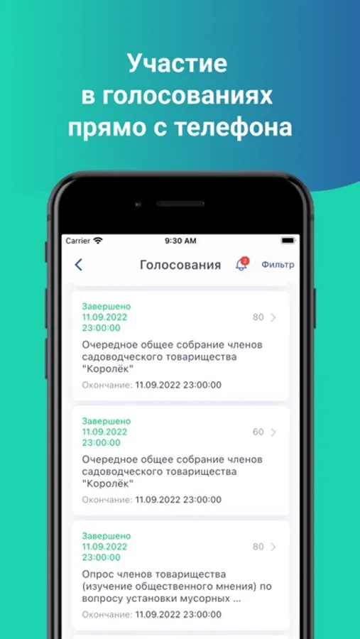 -Получайте уведомления о голосовании, изучайте повестку дня, принимайте участие и просматривайте результаты текущих и завершенных голосований.