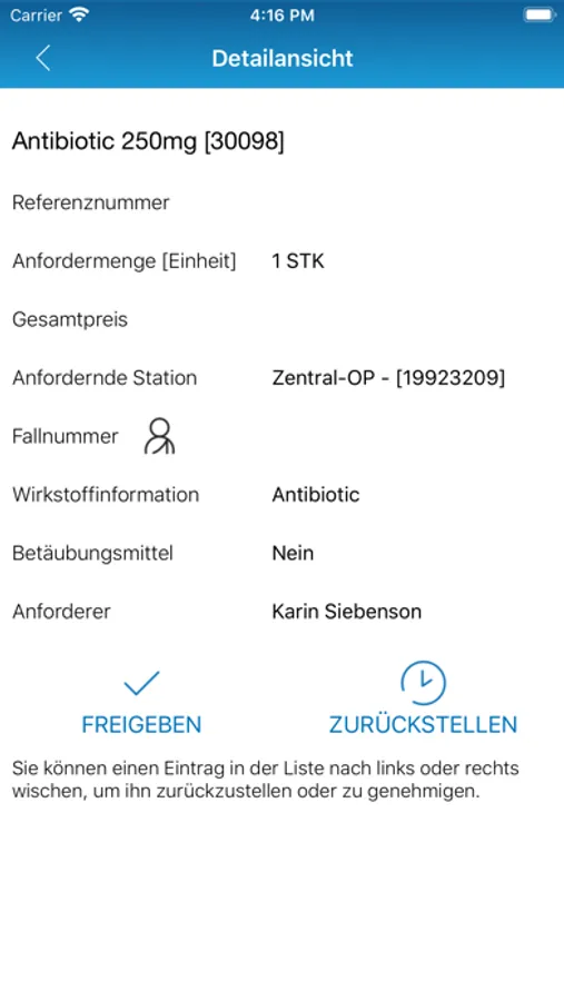 Sicherheit in der Patientenversorgung – egal, wo Sie sich gerade aufhalten. Mit der App genehmigen Sie Stationsanforderungen auch von unterwegs. Sei es auf dem Weg zur nächsten OP, in ein Meeting oder zwischen den Behandlungen Ihrer Patienten. Push-Benachrichtigungen informieren Sie laufend und unmittelbar über die aktuellen Materialanforderungen Ihrer Abteilung.