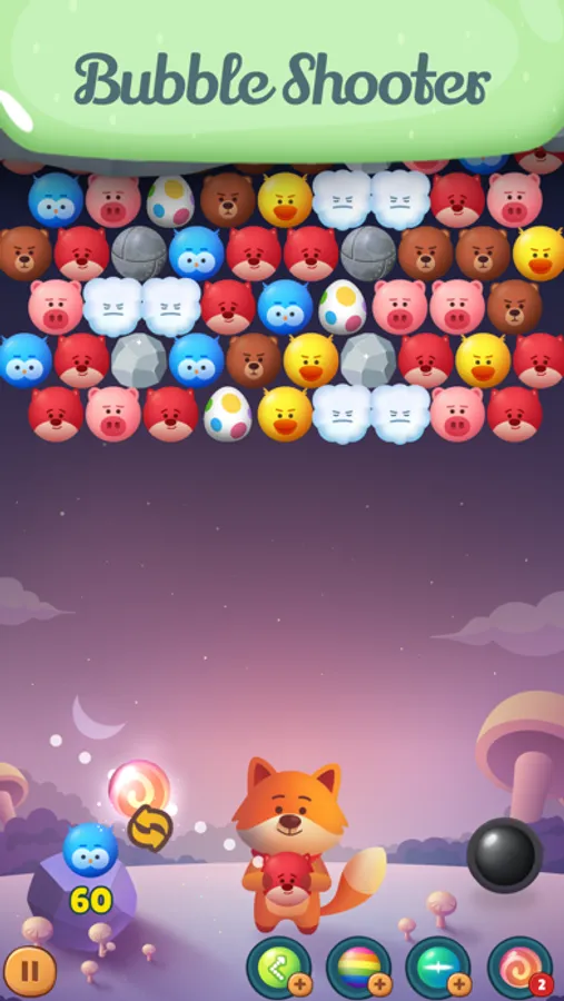 Embark on an enchanting journey with the classic and addictive bubble pop game, tailored uniquely in a charming animal bubble style! This is not just a game, it's a fun and relaxing journey that is designed to delight you at every step. Aim, shoot, and match 3 bubbles of the same type to clear levels.