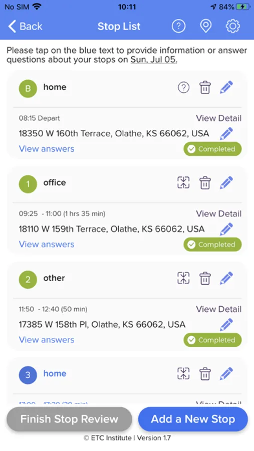 This app was developed using the latest stop recording techniques to help survey respondents and their household members more easily record their travels while minimizing battery drain whenever possible.