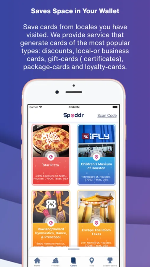 Spoddr makes collecting loyalty cards - by going to locations - fun and exciting, and it is also a practical system to replace the ever growing number of loyalty cards that stores ask you to hold for them.