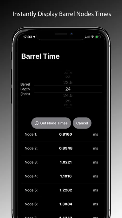 This app gives you a quick reference to barrel node times for 7 nodes of your rifle's harmonics. Can be used in conjunction with reloading software like QuickLoad.