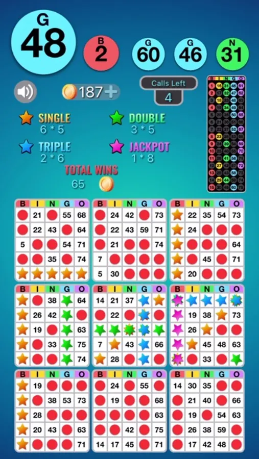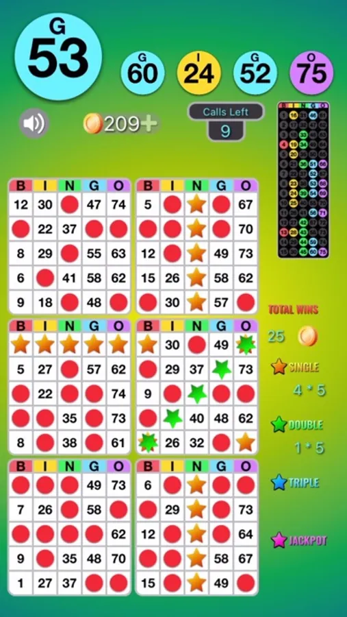This app is free with limited ads. Start off with a free batch of coins. Earn more coins by watching short videos, through in-app purchase, and every time you get bingo! And get free coins every day by trying Daily Spin