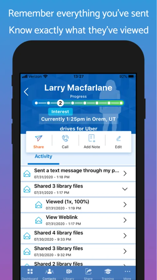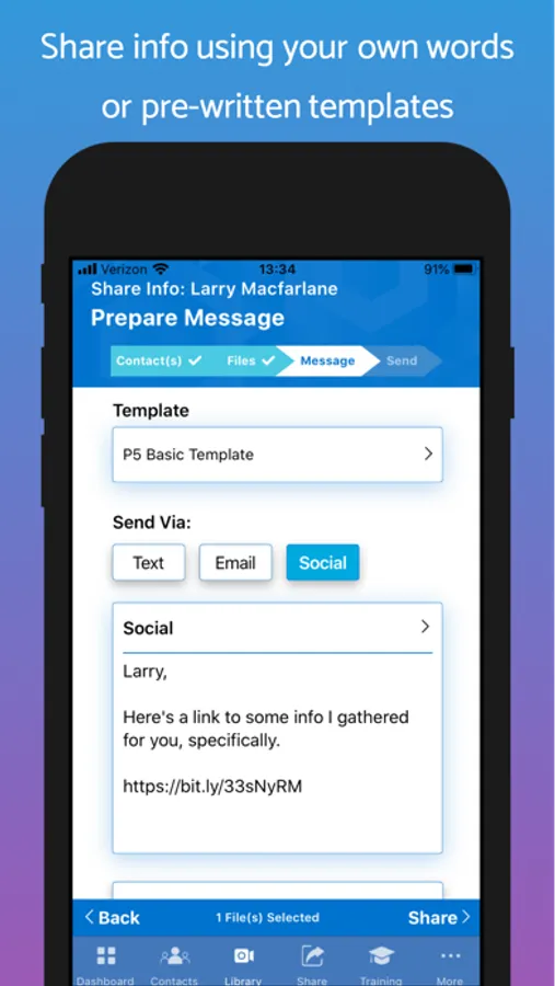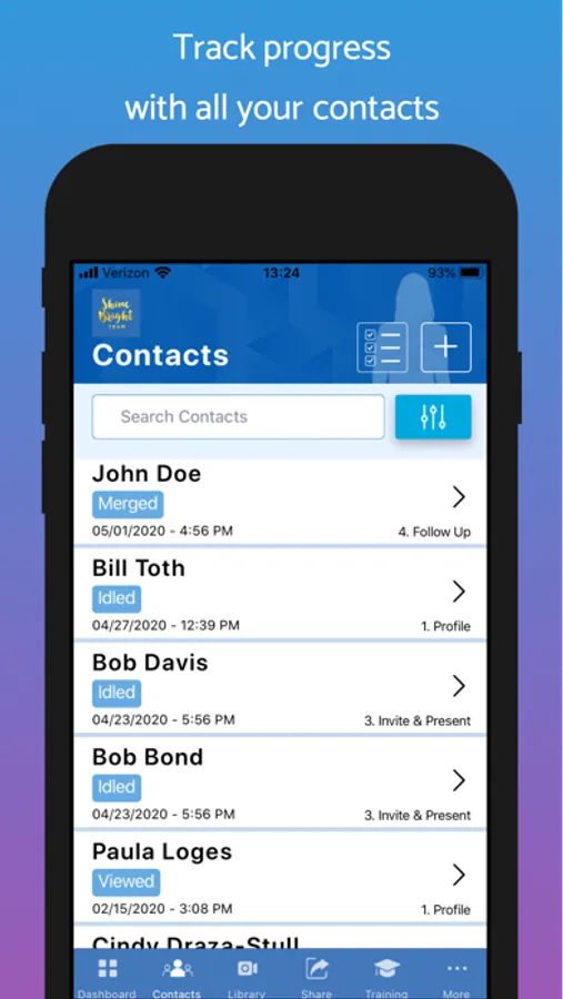 Field leaders create and organize their own content libraries, training, message templates, contacting steps and more. Leaders can also communicate with their teams.