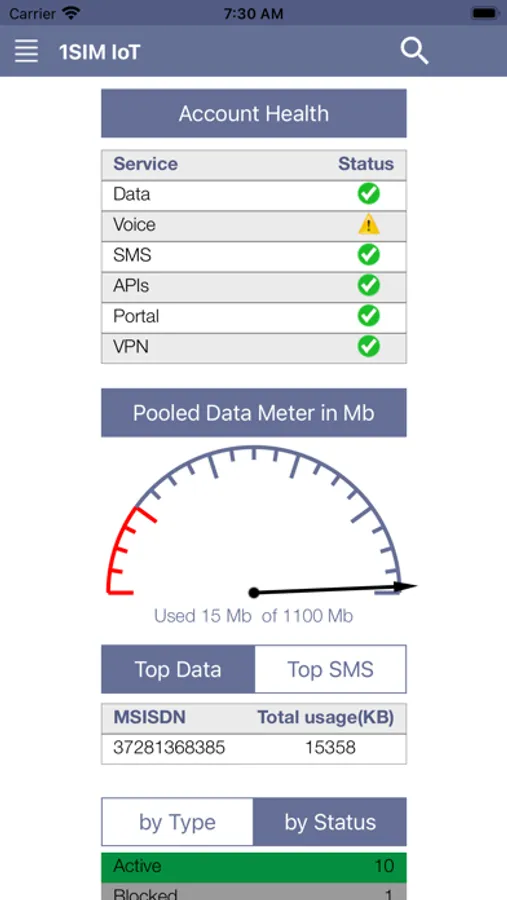 The OSCAR IOT app provides you with real time information about all active, blocked or deactivated