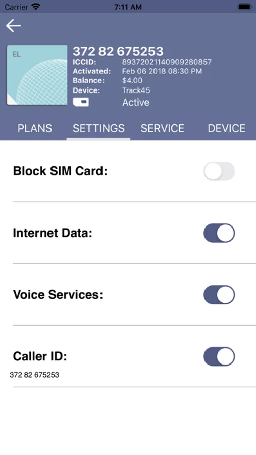 The app allows you to have access to each sim card /device, set the monthly spending limit for the SIM,