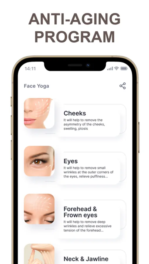 Start the fight with age-related changes in your face today! Keeping your face toned with our anti-aging self-massage program is easy! With the help of our face-lifting programs, devoting only 20 minutes a day to light face exercises, after half a year you will be surprised to see your reflection in the mirror: a radiant and young beauty will look at you, on whose face there is no hint of wrinkles!