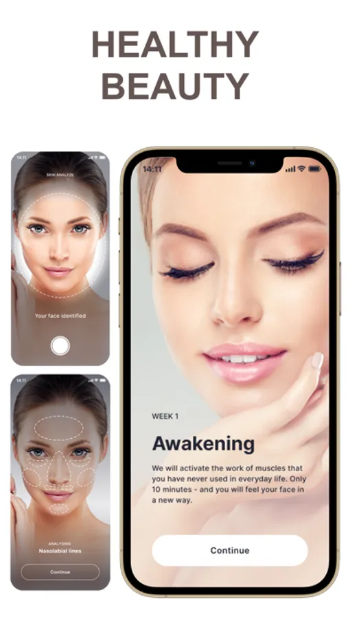 take selfies before and after a course of rejuvenation training - face lifting