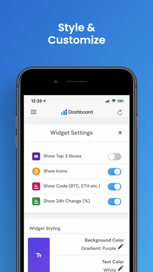 Add widgets that are relevant for you and your investments. Style and customize widgets and Dashboards as you want. New widgets are added frequently!
