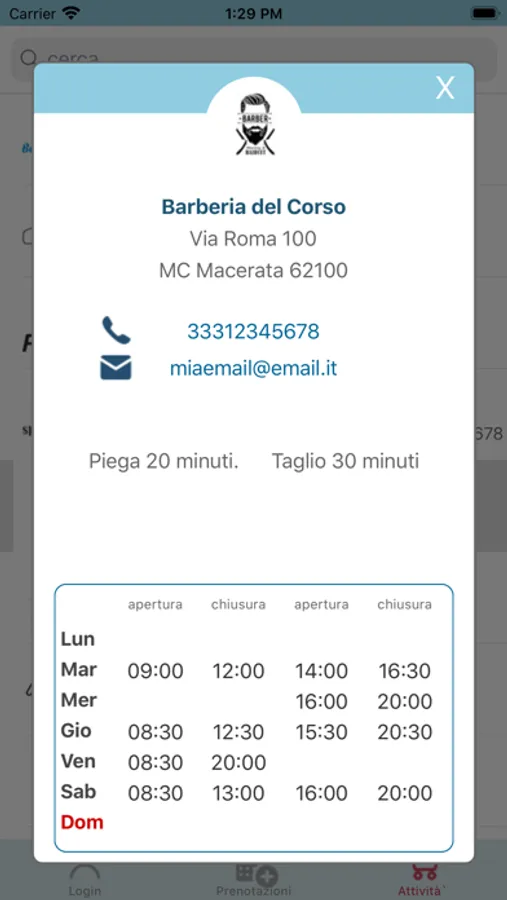 1. Registrati e inserisci: il tuo logo e la tua immagine pubblicitaria; l'orario di apertura settimanale, la durata degli appuntamenti e il numero dei Clienti che puoi ricevere contemporaneamente.
