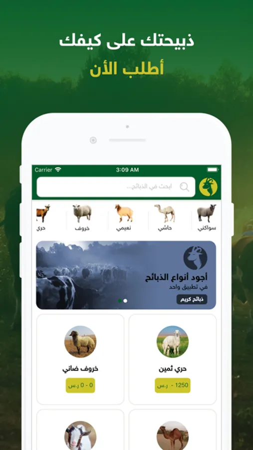 ذبائح كريم هو تطبيق متخصص لبيع الذبائح (حي, مذبوح). حيث يقدم أنواع مختلفة من مواشي الأغنام والماعز بمختلف الأعمار والأحجام، كما تخضع الذبيحة لفحص صحي في مسالخ البلدية قبل البيع من ثم يتم ذبحها وفق الشريعة الإسلامية وتجهيزها الى العميل، بالإضافة الى توصيلها إلى باب منزلك أو استراحتك.