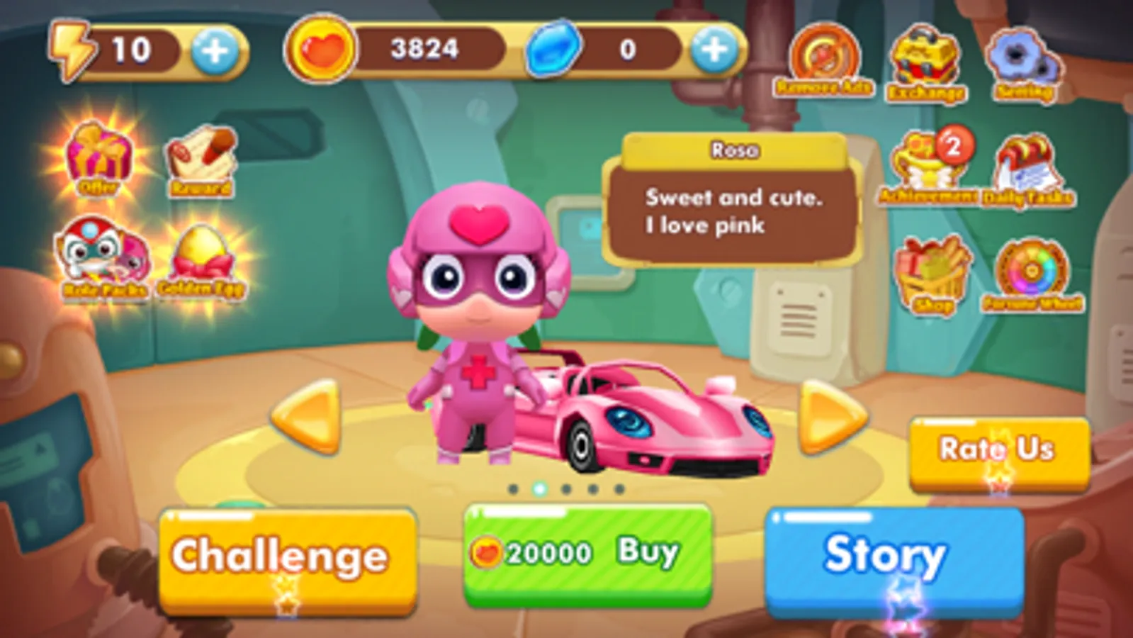 Drive into an action-packed experience. Be part of this Car Racing tournament as a young masked superhero. It is a top toddler game for free. Race against a field of rival drivers with special skills. Unlock and upgrade a variety of cars, from dune buggies to many weapons and powerups!