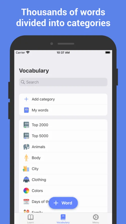• Thousands of Italian words and phrases divided into categories, including NVdB (top 5000 most common words).