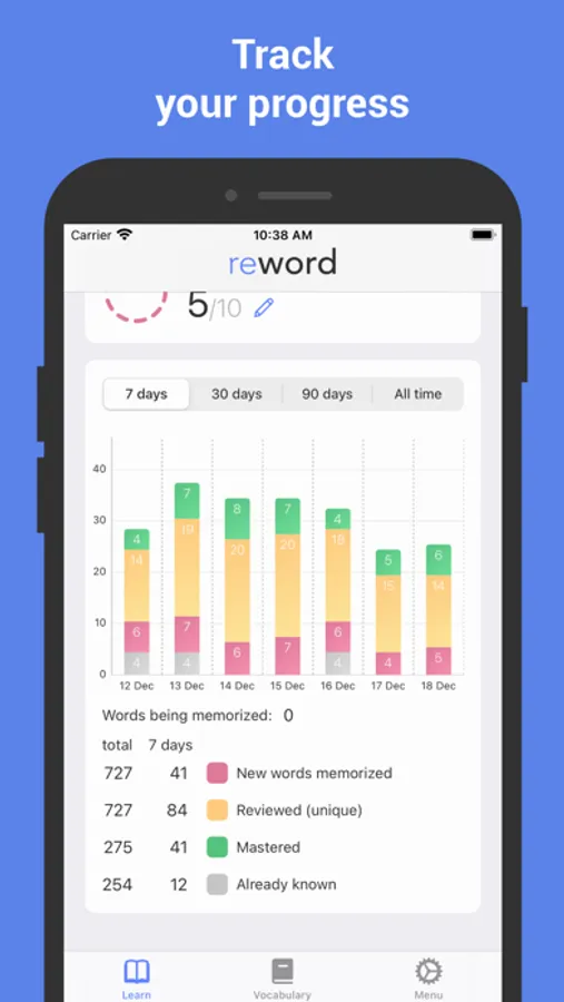• Statistics: track your performance in learning Italian words for the last week, month, three months and the last year.
