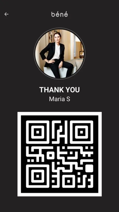 - Display your in-app QR code or hand it to your customer on a personalized béné Tipping Thank You card for seamless tipping