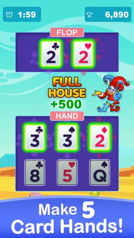 - Complete 5 Card hands quickly!