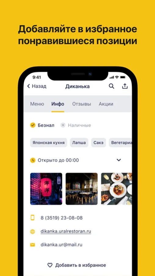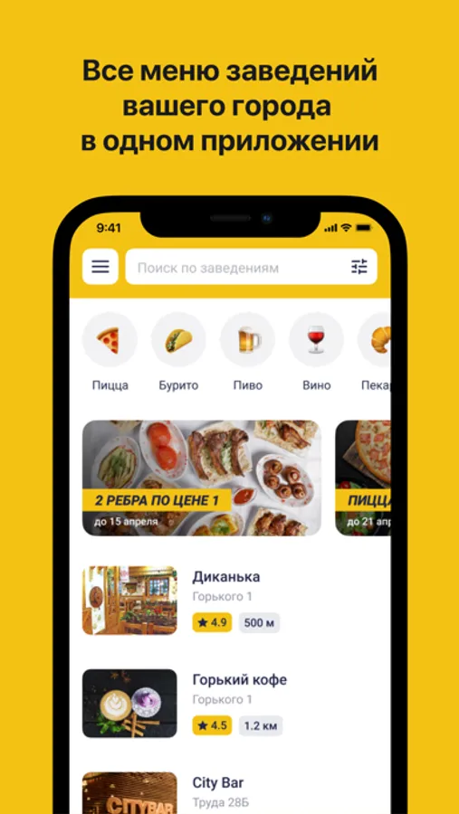 • Следите за новостями любимых заведений и будьте в курсе новых акций (скоро).