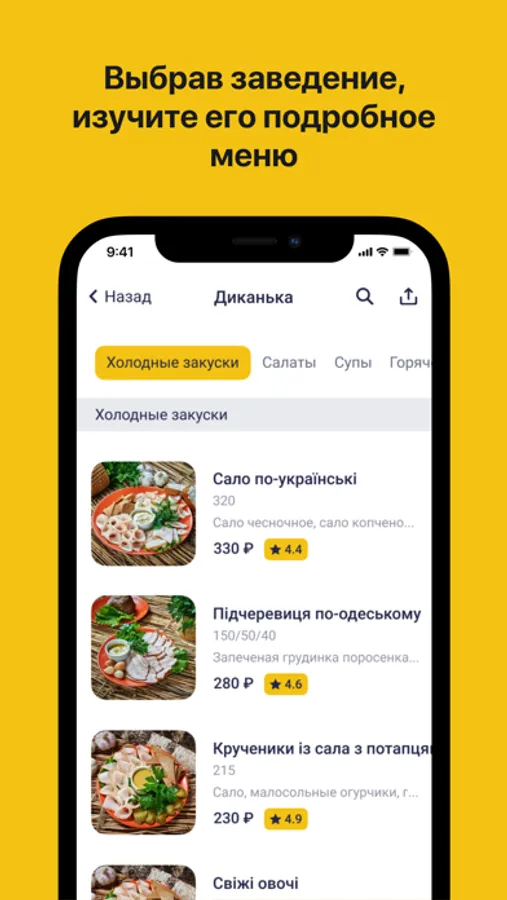 • Выбирайте ресторан по типам блюд, видам кухни, среднему чеку;